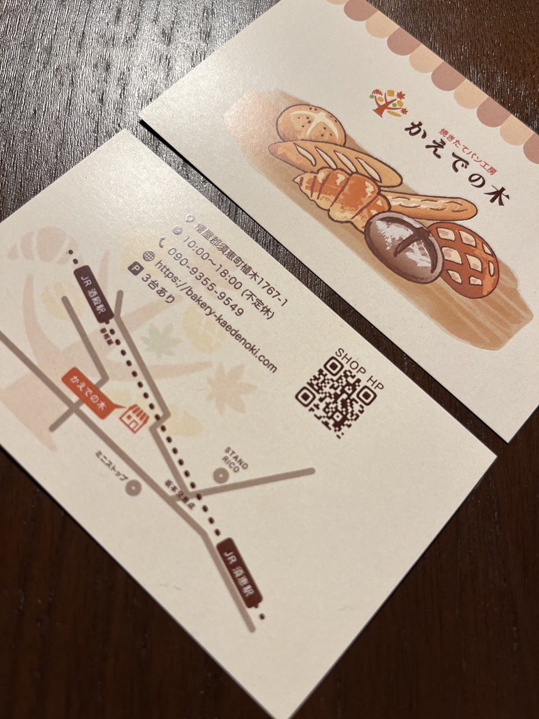 ・一目でパン屋のショップカードとわかるようにパンのイラストを使用